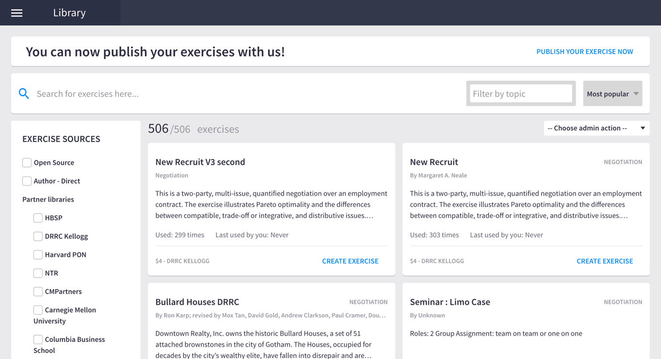 Choose from hundreds of DRRC, Harvard PON cases and adapt them for your research study or build your own role play easily